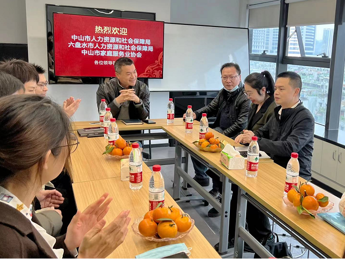 2022年2月10日,中山市人力資源和社會(huì)保障局、六盤(pán)水人力資源和社會(huì)保障局與中山市家庭服務(wù)業(yè)協(xié)會(huì)領(lǐng)導(dǎo)蒞臨網(wǎng)政公司進(jìn)行實(shí)地考察和調(diào)研。
